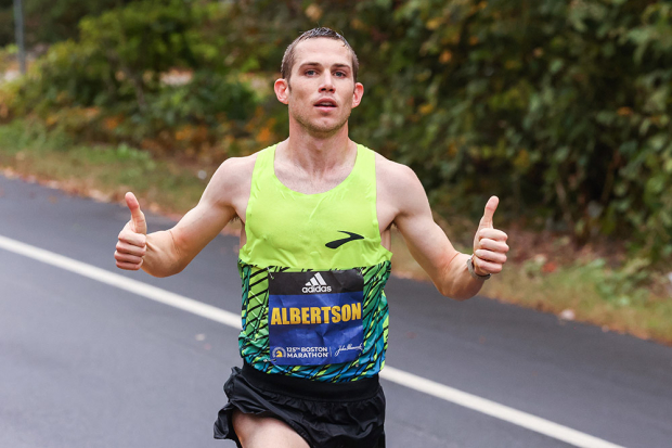 CJ Albertson led the 2021 Boston Marathon for 20 miles before eventually finishing 10th in a time of 2:11:44, and this fast Fresno, California man seemingly has embraced the treadmill.