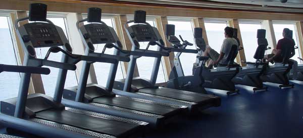 When you’re really old, like me, the cruises we go on have a bunch of other really old people and even more really, really old people. There aren’t a lot of 20/30/40 bad even 50 year olds. That means the gym is seldom full, even all day at sea. I’ve had to hold one hand in the treadmill for a whole hour run because of the rough seas. I’d swap hands every five mins to not get too tired.