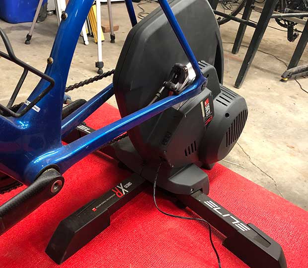 This trainer supports max power and incline values that, I promise you, you won’t exceed (2300 watts and 24 percent). The Direto XR is stable, with adjustable feet for uneven floors (like mine), I had no dropouts or failure to pair – which I have occasionally had with Saris trainers. It’s accurate, and the feel is reasonably roadlike. I note that others have detected a difference in road feel between this and other, pricier, direct drive smart trainers but, alas, I’m too neanderthal to notice. About the only negative I can report is that the Saris H3 frame – which with its fold-out support arms is the closest analog to the Elite in its foundation and platform – feels more metallicky and this trainer more plasticky. But, this made no real difference in the feel of the trainer.
