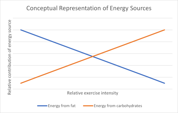 So those are reasons it might not be helping you as much as you think, but what’s really going on here? The main issue with going low/no carbohydrate and relying on body fat stores is that fat takes longer for your body to metabolize than sugar, and so you get less energy per unit of time than from sugar metabolism. This is where we get into the world of sliding scales. As exercise intensity increases, your need for rapid fuel processing also increases. Energy metabolism from fat becomes self-limiting in a manner, because your ability to do work is limited by the rate that your body is able to provide energy to muscles. Essentially, fueling from fat lowers the ceiling on the intensity of work you can produce in racing events.
