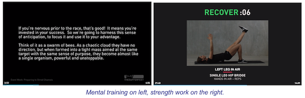 Lastly are the four sets of non-cycling videos: running, weight training, yoga, and mental training. These differentiate SUF from other indoor training apps, and are an instance of SUF growing into a holistic ecosystem for training vs. just a way of doling out training stress.