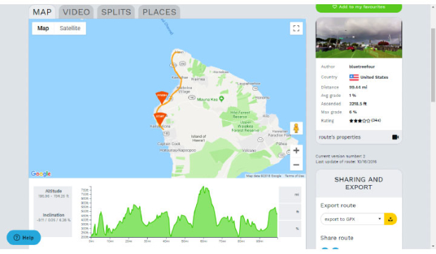 In the example above, we’ve zoomed into Hawaii (double click the map to zoom in, double right-click to zoom out) and see a few video routes. Clicking on any route will provide additional details: