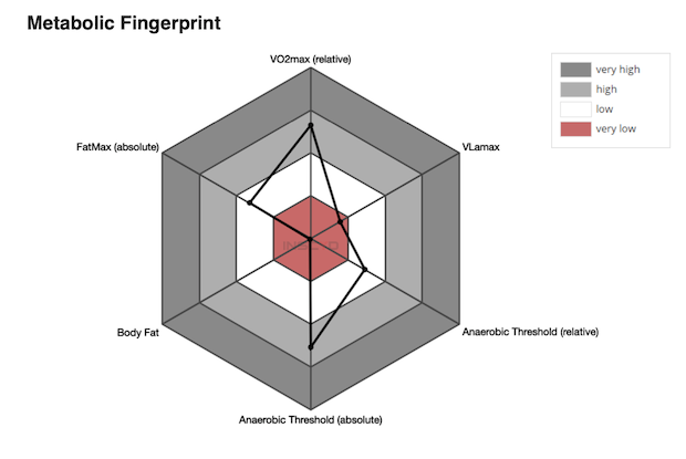 After the test is complete, INSCYD calculates a fair bit about you and your athletic profile. Above you can see some of the numbers that came out of my particular test session. By pairing up your HR, power, and body composition data, they're able to extrapolate some key metrics and help determine your strengths and weaknesses as a particular athlete.