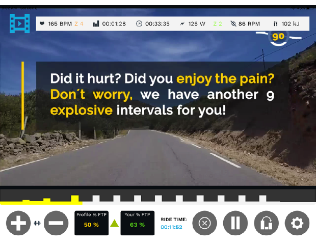 While the majority of the workouts will look like the samples above, there are a few workouts included that have videos (look for the CycleOps 30 minute workouts or the Rouvy Guides). If you’ve got the skills you can incorporate videos into your custom workouts as well.