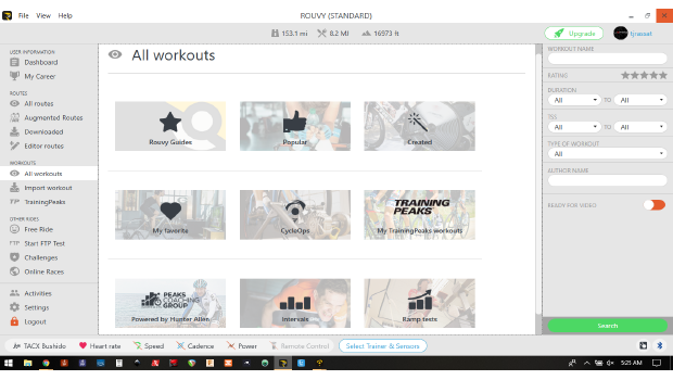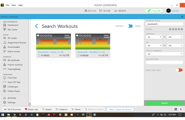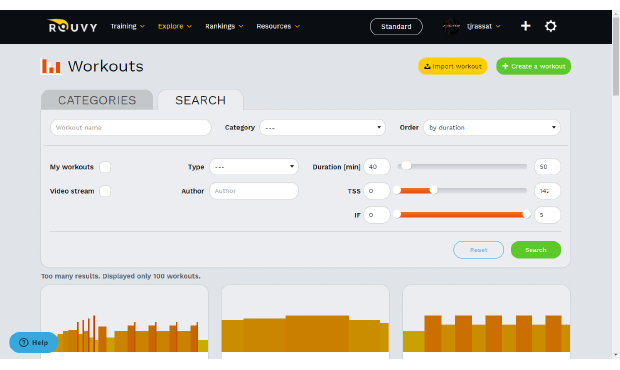Another way of finding your workout is the web-based version of Rouvy’s workout search: