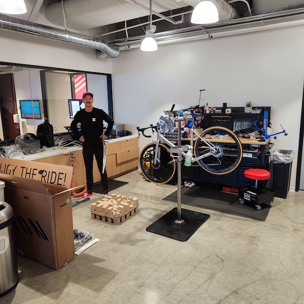 After the tour, we visited the in-house bike shop maintained by Johnny Vanderwell, Workplace Specialist and Lead Bike & Lab Technician, to get our bikes prepped for the weekly employee lunchtime ride.