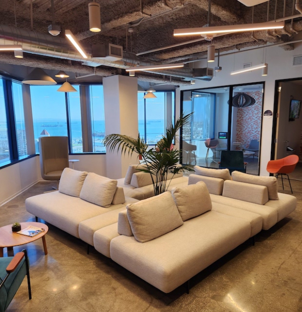Within the open concept of the three floors with very few personal offices, there were intimate places for people to meet for private conversations, including privacy booths for video and phone calls. The work stations throughout the place are centrally booked, so that employees can designate where and when they want to be working alongside or apart from others.