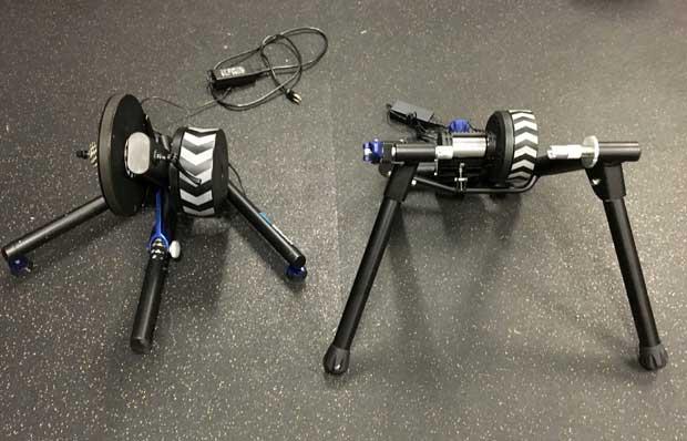 Just like turbo trainers, smart trainers are also available in either direct drive (Wahoo KICKR above left) or a wheel-on designs (Wahoo KICKR SNAP on the right) and each has its strengths.