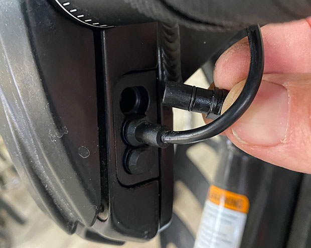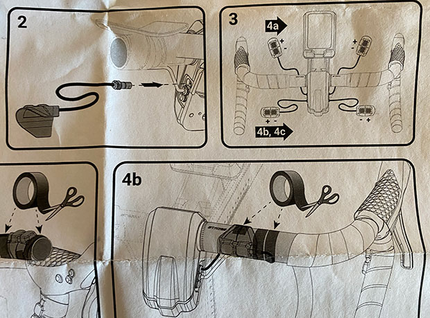 There are some ports on the Stages SB20, and in the included instructions for these shifters you see the port the shifter wires plug into. That port has a dust cover type plug; you remove the plug; and the jack has some “flats” that make it impossible to mess up left and right (only the left shifter goes in the left port; only the right can go in the right port). The image below shows the ports. The wires are just long enough to make it from the shifter to the port, and I think that’s because these shifters were never contemplated as bar-end shifters. In the image included on the Stages website you see these shifters on the handlebar drops, as in, if you want to shift while sprinting. They are entirely analogous to the wired remote shifters mad by component companies, like SRAM’s Multiclics.