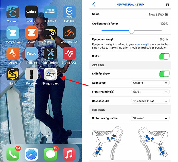 As you might guess, there’s a companion app, just as is offered by Wahoo and Tacx (and you wonder why treadmill companies don’t catch onto this but that's another story). It makes it really easy to configure your smart bike. Wahoo remains the king (in my own experience) at the hardware + associated app ecosystem. I don’t know that Stages makes this obvious, but the first thing you do once you have this bike assembled is to go to Google Play or the Apple App Store and download Stages Link. This is how you configure the gearing, choose which buttons do what on the shifters, and so on. There is a lot more to this app than just this, but that’s for another day.