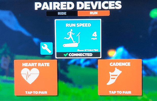 When you kick start Zwift, you’ll be asked to choose a device. Always. Ride or run. Zwift will detect a device automatically. Let’s say the device Zwift detects upon boot is your footpod, and you want to change it out for the new RUNN unit you just installed. You just click on the device, on the screen, and up comes another screen with all the connected devices available to you.