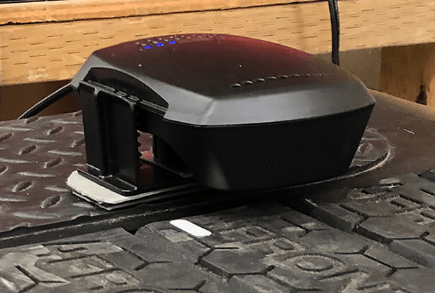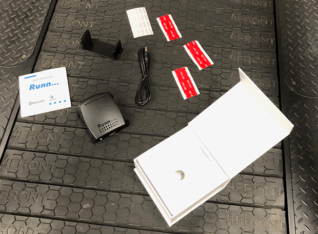 However, I found that cradle flimsy. If you press down on the RUNN unit with any force at all, that force overcomes the ability of the cradle to hold the RUNN unit. Why would I ever need to touch the RUNN unit? As we’ll see, there’s a button to push to engage the unit, and there’s a battery to charge with a micro USB cable. It wouldn’t be a problem if the unit were sitting flush with the bottom of the cradle, or maybe a short distance up, but with the 4Front I had to have this unit at the very top of the cradle.