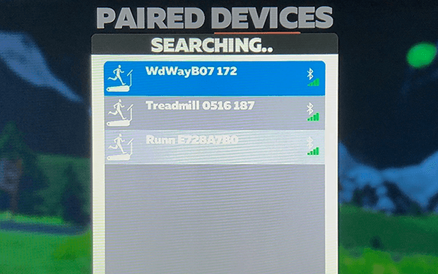 You’ll now choose the device you want. My treadmill has a factory-installed, built-in, BLE transmitter. I have also installed a GEM Retro in the mill’s CSAFE port. Then there’s the RUNN just installed. You can see them all transmitting to Zwift.