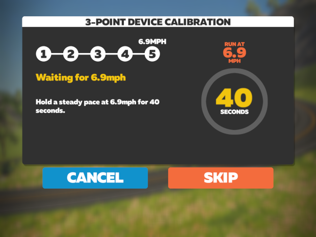 Calibrate your device. Zwift provides a tool that will have you run at 3 different speeds in order to provide the most accurate measurement possible. Follow the on-screen prompts, and if everything goes well, you will see a success message and return to the Device Pairing screen.