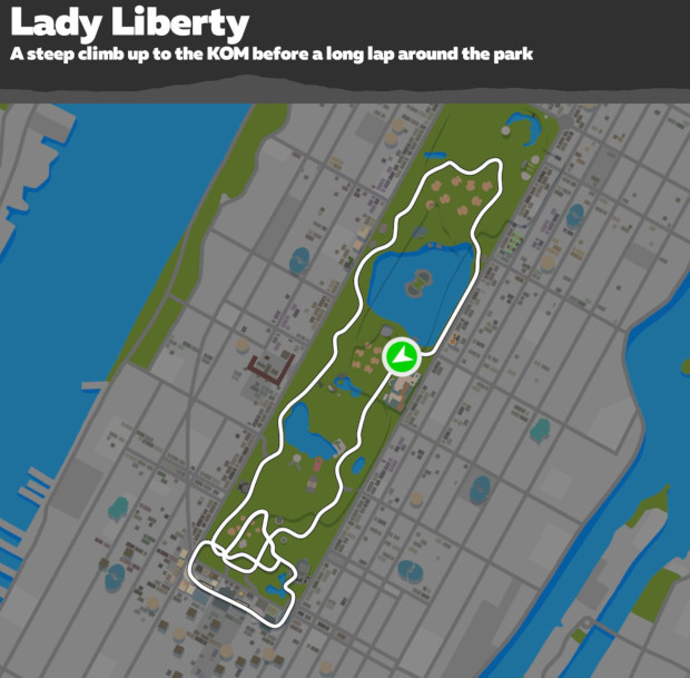 This route doesn't take you to the Statue of Liberty, but you will climb over twice her height on this 7.7 mile route up the New York KOM before a lap around Central Park.