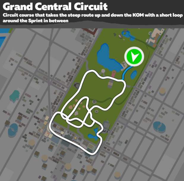 Zwift's version of Central Park has some short, punchy climbs to mix things up a bit, but for the most part, this figure 8 route is pretty flat.