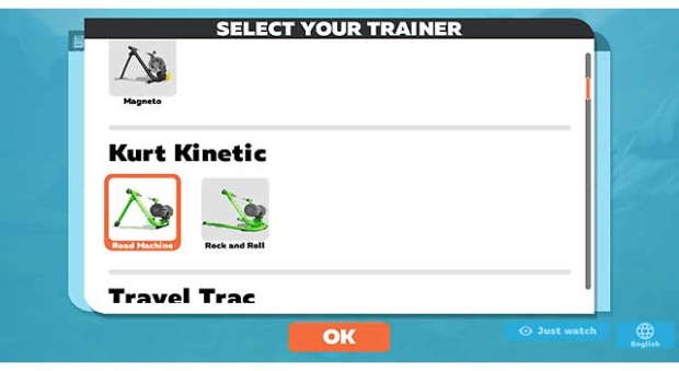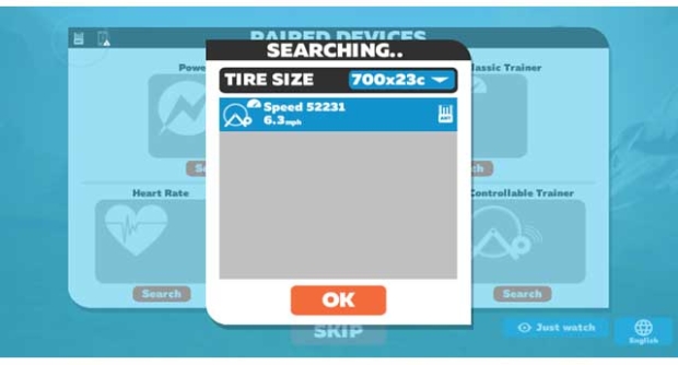 Once your speed sensor is paired, select the wheel/tire size closest to yours and click OK. You will now be prompted to select your trainer: