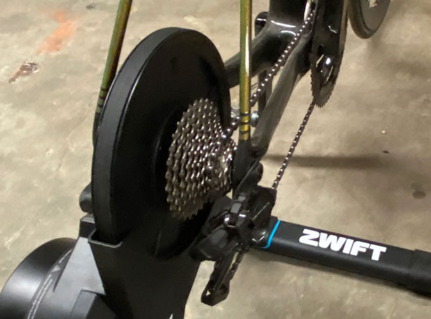 The Hub is a more modest project but in its own way potentially more powerful, because of the market segment at which it's aimed. Zwift didn’t make this smart trainer. It partnered with JetBlack, an Australian maker of highly regarded smart trainers and if this looks like the JetBlack Volt that’s because, well, it is. Mostly so. As I write about the specs they’re identical to the JetBlack Volt and the major technical difference is a change Zwift commissioned in the hub area to make the unit slightly more compatible with certain disc brake frame designs. (Zwift has tested more than 500 bikes with the Hub and they all fit, from road to gravel to tri to CX to MTB.)