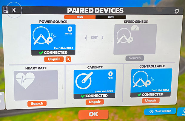 Next was to pair the device to Zwift and it would have been epic fail had that not happened, of course. But no issues.