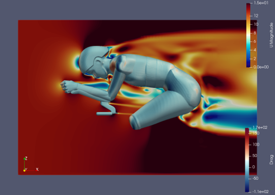 I used extensive Computational Fluid Dynamics (CFD) modelling to design our shoes at VeloVetta. My background is in mechanical engineering and I have experience working in aerospace as a contractor to NASA as well as in the engine and powertrain industry. CFD is essentially a computerized wind tunnel, but it gives us a lot more information than what you can get from a tunnel. For instance, it shows us in detail how the air puts pressure on all surfaces, and from the geometry of those surfaces you can calculate things like drag, lift and thrust. You can see exactly how the interaction of the air with the objects in the test changes the speed and direction of the wind and how that might change the way it interacts with things further downwind.
