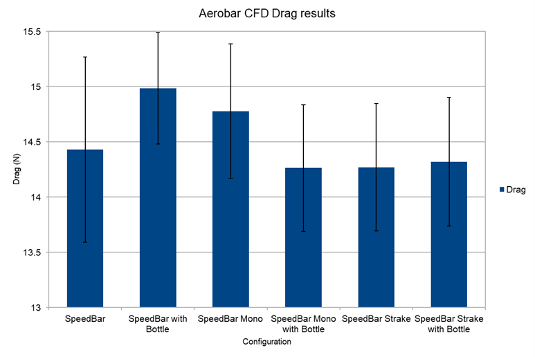 I hear a lot of people make the assumption that the mono aero extension designs are obviously faster than two separate bars, but our results along with results shared with us by Edwin, Marc Graveline and others show that is not necessarily the case. Our mono bar tested slower than the standard SpeedBar when it does not have a water bottle attached. But adding the water bottle helped bring down the drag to be even faster than the SpeedBars alone.