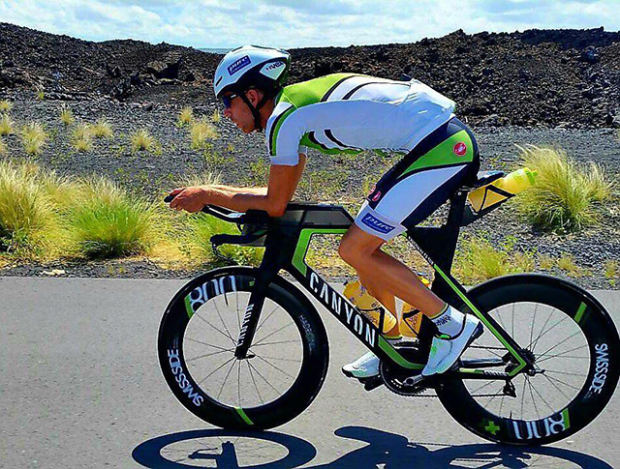 Fachbach had a new SRM power meter installed in Kona. The Shimano cranks are 172.5mm long and he used a 54-42 / 11-23 gear setup. The Dura-Ace chain is coated with Dry Fluid High End lubricant.