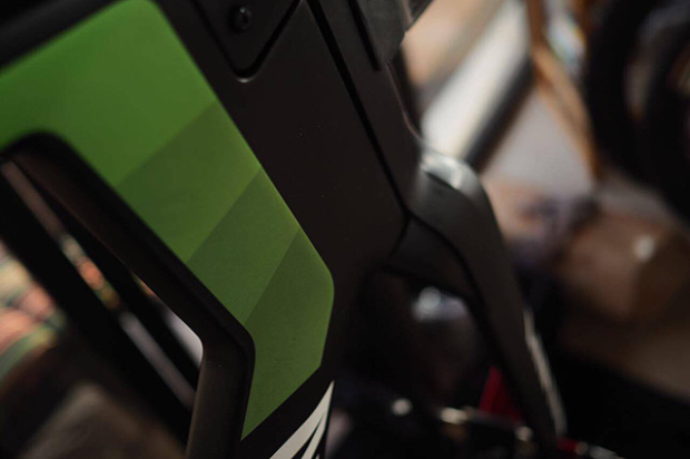 Various shades of green at the front end of this bike.