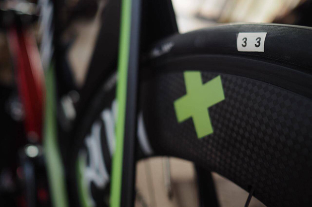 Like many other European pros Fachbach has opted for SwissSide Hadron 800 Ultimate wheels. In Kona he had them laced up with 23mm Continental GP TT tires.