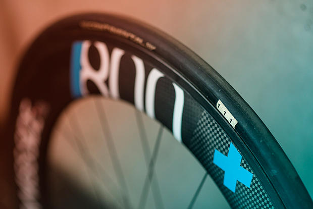 A special handmade Continental GP TT tire is on the back, and the front tire is a 23mm GP 4000 S.