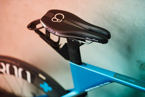 Lange stayed with Cobb as his saddle choice as this Fifty-Five model prevents him from sliding around too much. The bottle mount behind the post is Canyon specific.