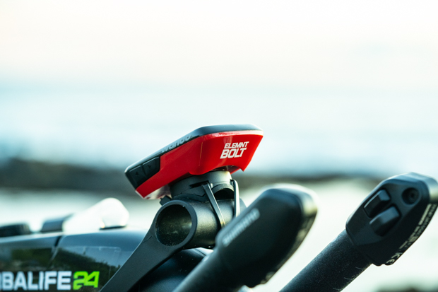A Wahoo Elemnt Bolt sits between the 51 Speedshop extensions and in front of the Speedfil BTA hydration unit. Jackson also rides with 51 Speedshop arm cups.