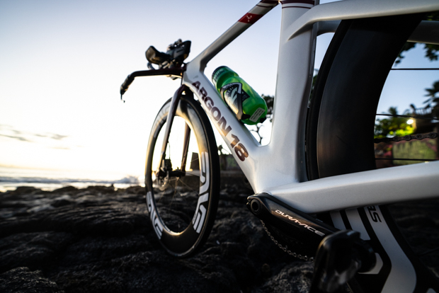 This new Argon 18 E 118 Tri+ was just announced this week but Heather Jackson has been able to ride it for a while now. According to an Instagram post of hers, the colors and details apparently change with the air temperature. More is revealed as it gets hotter, and it is likely that Kona will deliver along those lines.