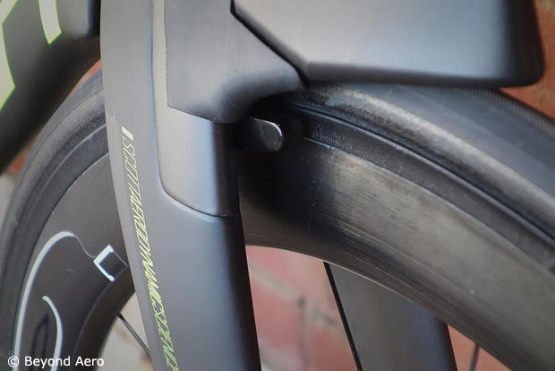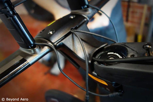 The Beyond Aero shop built up a second version, but made that one UCI legal and removed the front liquid storage and the bento box on the top tube. The UCI legal one ist still in the shop at Beyond Aero and can be finished to customer wishes.
