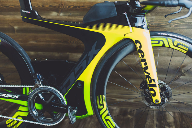 It will be difficult to overlook the Hoff with this very fly medium sized Cervelo P5X. Hoffman is 177.5cm tall and weighs around 71 kg.