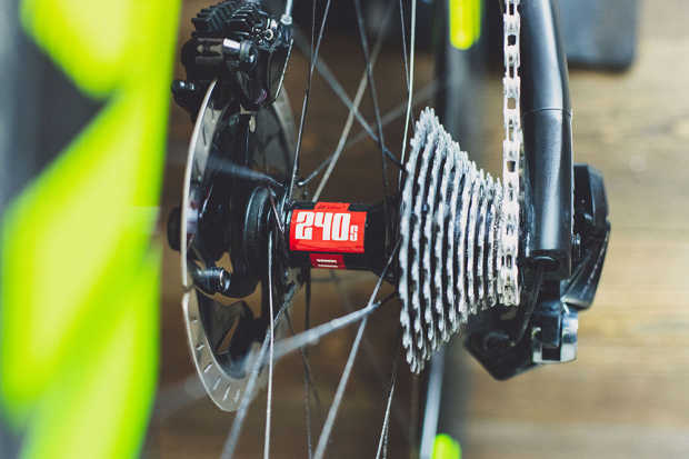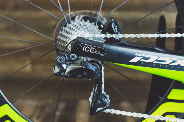The view from the other side shows the big range of the cassette and the Ice Friction Tech coated Shimano chain.