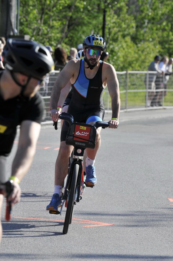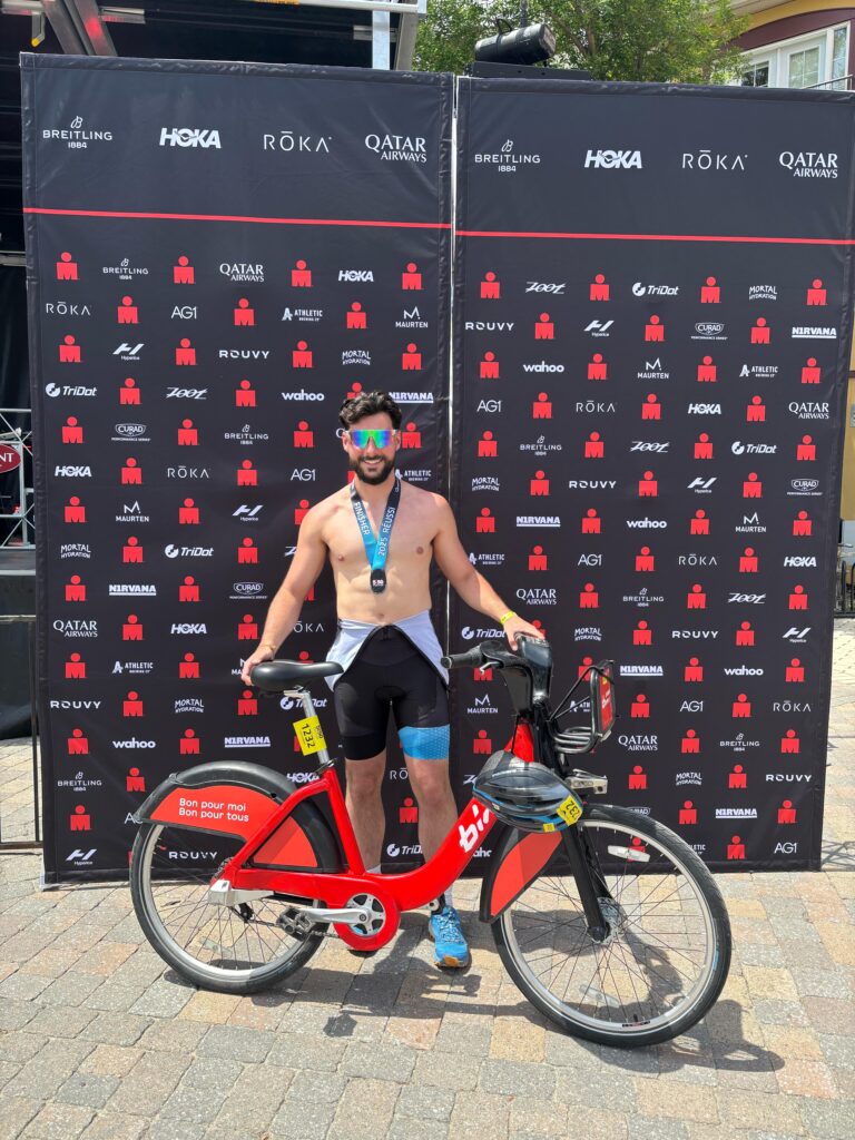 Turns out that Malguy wasn’t only using the Bixi bike share bike for a bit of fun – the 27-year-old from the Paris suburb of Le Blanc Mesnil is on a two-year work term with a financial company in Montreal and didn’t bring his bike over from France. For the last six years its been a tradition for the young Frenchman to do at least one triathlon a year – it started as a challenge from a relative, and he’s done at least one triathlon every year since. When three other friends said they were going to do the race in Mont-Tremblant, he figured he would tag along and get his triathlon covered for 2025.