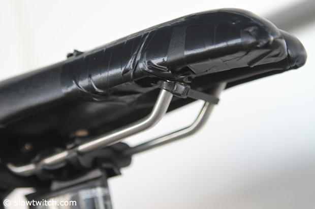 He did however ziptie the saddle rails to get it narrower.