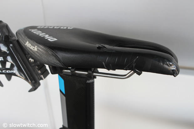 Kahlefeldt rides an ISM Attack saddle and the tape here is not covering up a crash wound, the Aussie padded that side as he has a shorter leg on that side.