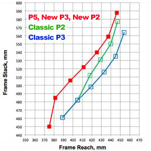 The big difference between now and that P2 reviewed here in 2010 is geometry. The “new” P3 intro’d last year featured a shorter reach and taller stack than the “classic” P3. While the new and old P3 looked the same at 10 paces, they fit pretty differently or, to put it another way, they fit exactly the same, just, with the new P3 you rode it without the 30mm or 40mm of spacers under your stem.