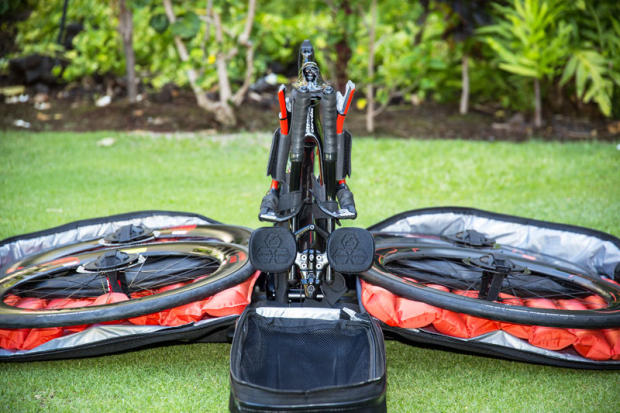Cervelo partnered with Biknd to make a travel case just for the bike. It’s pricey at $800 and change, but it’s exactly for this bike, takes 4 wheels, and paraphernalia. It’s basically this company’s Helium V4 model which sells for $650, but with a number of custom straps and ties just for this bike. Also, this bike takes 12mm thru axles and I don’t know if the standard Helium V4 is prepared for these.