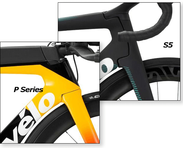 The new P5 is a slightly longer/lower bike. Not as long/low as the (original) Classic P3. Here’s an example: In a 56cm the new P5 has a stack and reach of 521mm and 431mm respectively. The P-Series has a stack/reach of 540mm and 424mm. Slightly narrower; considerably taller. Why? Two explanations. First, a tri bike, for a mass audience, probably ought to be the geometry of the P-Series. This is a consensus industry geometry and it matches that Trek, Felt, QR and other companies are doing.