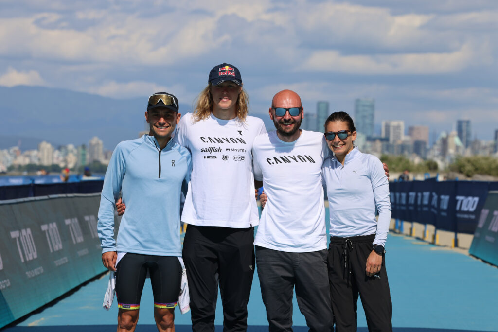 Jelle Geens, Mika Noodt, Coach Reszel, Daniela Kleiser at T100. Photo: Nancy Otto.