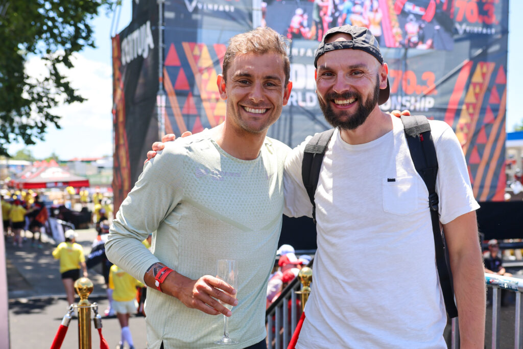 Jelle Geens and Coach Reszel at IRONMAN 70.3 World Championship 2024. Photo: Nancy Otto.