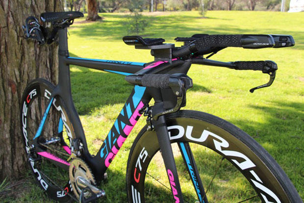 We recently noticed the unique paint scheme on the Giant Trinity Advanced SL of age grouper Daniel MacPherson. The fast Aussie currently resides in Los Angeles and he will soon be interviewed as a random age grouper, but now we look closer at the bike that was custom painted by Giant Bikes in Melbourne, Australia.