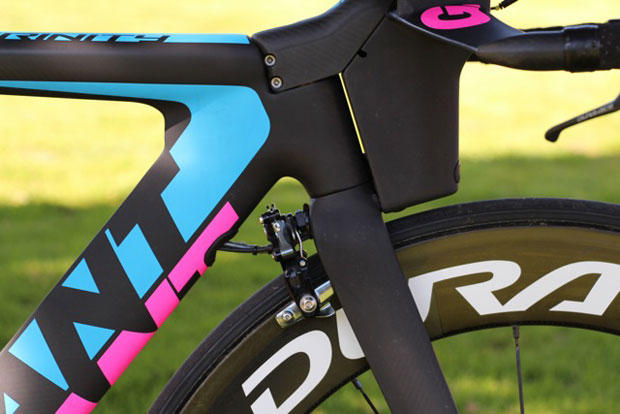MacPherson rides a Fizik Arione Tri2 saddle and has an XLab hydration setup.