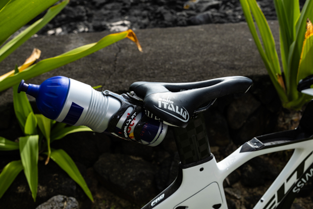 Ryf's saddle of choice is a Selle Italia Gel flow and keeping the color consistent with the Xlab Gorilla XT Cage.