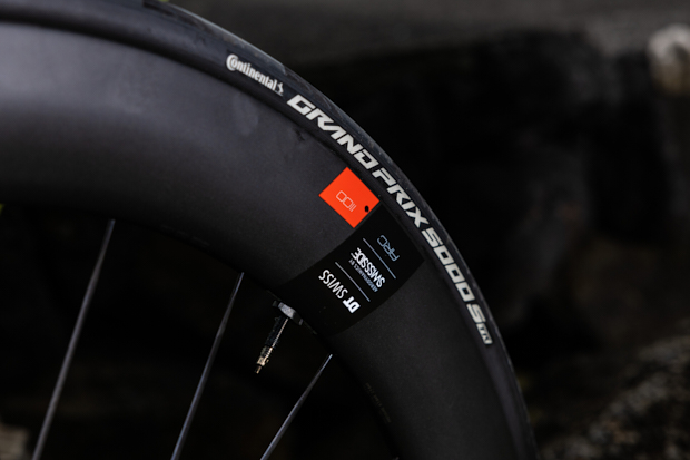 Ryf's wheel choice this year is the DT Swiss ARC 1100 – 60 mm deep in front, 80mm in the rear — with Continental GP5000S tubuless tires.