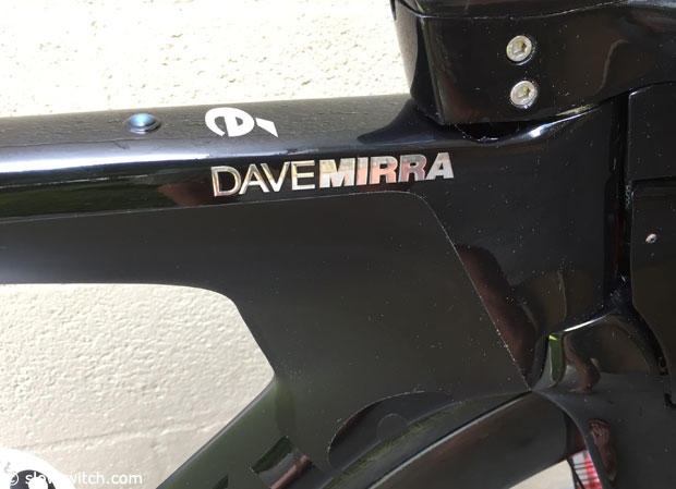 Dave Mirra is currently in Kona to watch the race and train on the GoPro Ironman World Championships course. I bumped into the former X-Games superstar converted triathlete at Da Poke Shack on Ali'i Drive and that gave me a chance to check out his custom painted Cervelo P5.
