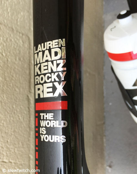 Dave Mirra's wife Lauren, his kids and dogs get lots of love and attention on the top tube.