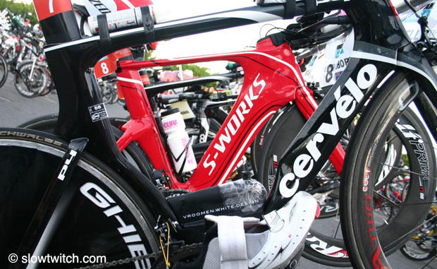 Dellow uses Louis Garneau TRI HRS cycling shoes.